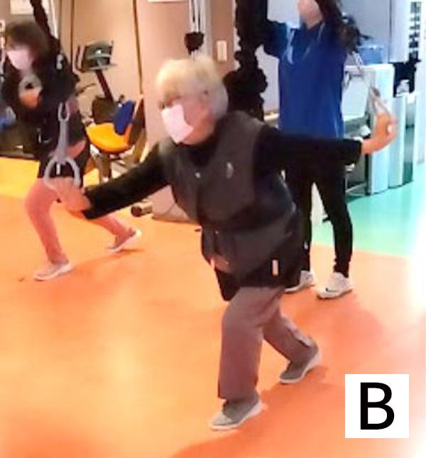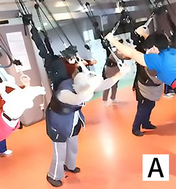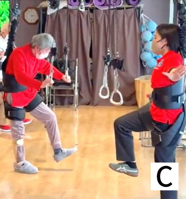 またゴムで体を支えられているため、個人に合わせた適度な強度のトレーニングが可能となります。